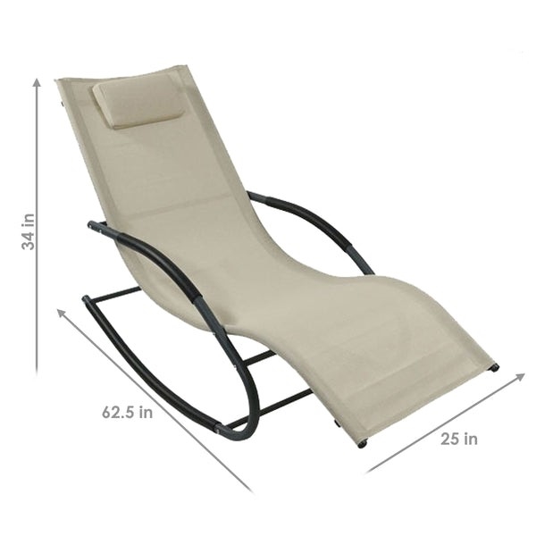Add comfort and sleek contemporary charm to your space with this Modern Beige Rocking Chair Chaise Patio Lounger with Pillow. This rocking chair is specifically designed for placement in the outdoors, as it is feature weather-resistant 70% vinyon and 30% polyethylene seat material. Plus, comes with a pillow that attaches and detaches with hook and loop fasteners so you have added head support.