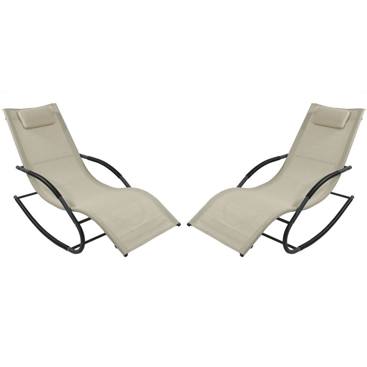 Home > Set of 2 Beige Rocking Chaise Lounger Patio Lounge Chair with Pillow