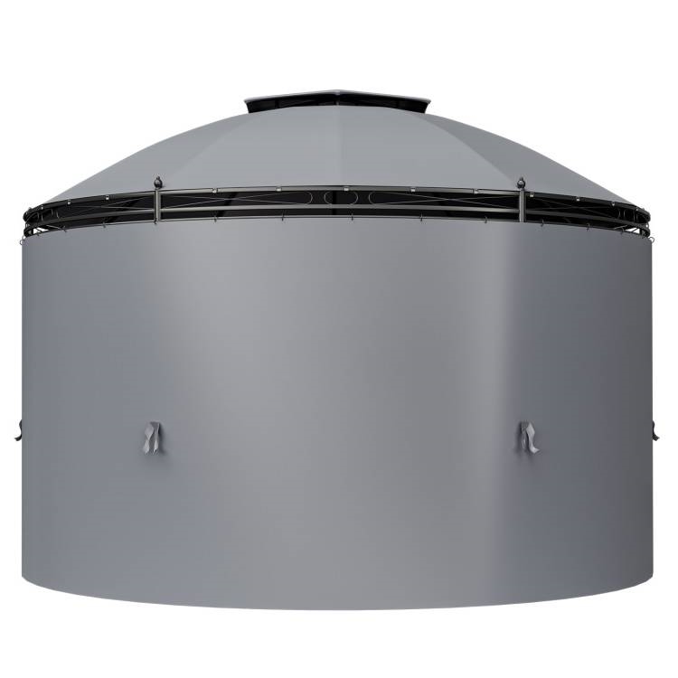 Enjoy all of outdoor leisure time and escape the elements with this Circular Dome Hexagon Gazebo w/ Polyester Privacy Curtain in Grey. This patio gazebo has a double-roof design that facilitates convection and circulation of hot and cold air, promoting good ventilation and keeping cool under the gazebo. This outdoor steel gazebo is equipped with 6 side curtains, which is connected by hook and loop fasteners. They are removable with convenient hooks and can be easily put down to provide excellent privacy. When you don't need to use them, you can store the curtains to one side with hook and loop fasteners to provide full ventilation. This 11.5 ft x 11.5 ft outdoor gazebo has an elegant round shape, which is perfect for any outdoor decor, such as patio, courtyard, garden, deck, etc. In addition, the spacious gazebo is enough to accommodate 4-5 people for dinner, gathering or chatting under it. The top of this gazebo is made of 160g high-quality polyester cloth with waterproof PA coating and the curtains are made of 130g polyester cloth.