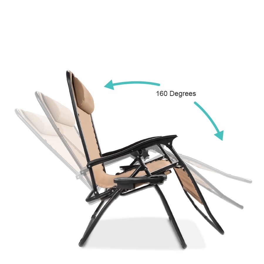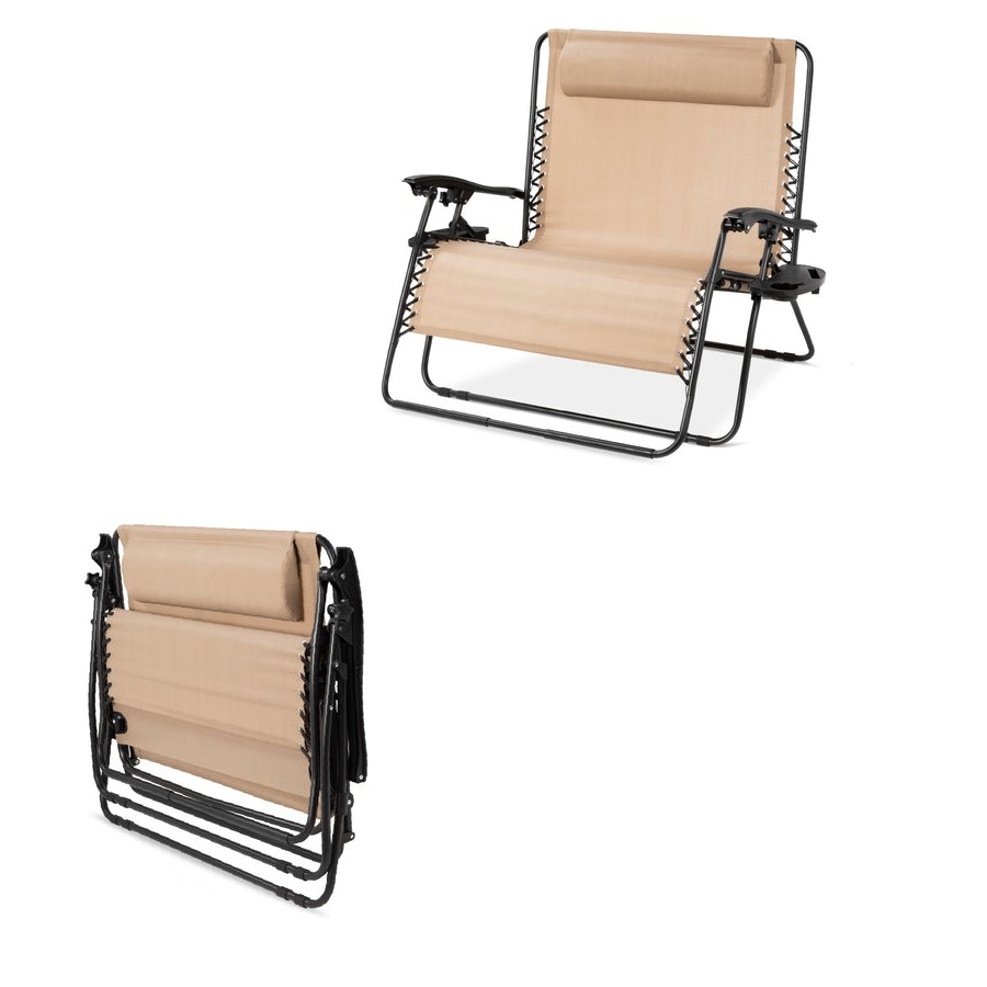 Come relax with a friend or loved one with the 2 Person Tan Extra Wide Zero Gravity Chair Lounger with Cup Holders Headrest! Built wide to seat 2 people. Recline 160 degrees and enjoy an adjustable, removable padded headrest for additional comfort. Foldable, lightweight chair design allows you to enjoy it anywhere at home, at the beach, outdoor sporting events, and more. Conveniently designed with a cup holder tray for drinks, magazines, phones/tablets, or other small items. Made of high-quality, weather-resistant mesh and an aluminum frame for optimal support, as well as replaceable elastic cords that make the chair immediately conform to the body.